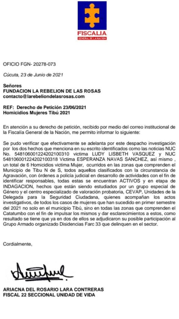 La Rebelión de las Rosas se ha manifestado, pidiendo a la Fiscalía General de la Nación investigación pronta, respuestas , […]